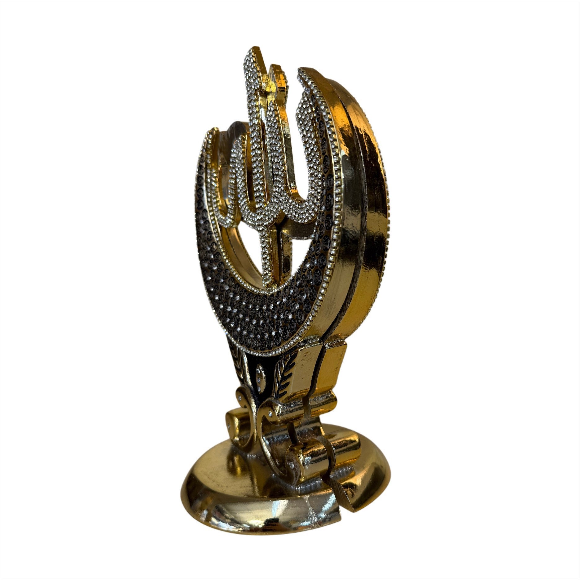 Prachtige islamitische beelden met verfijnde details en schitterende steentjes. De luxe goud/zwarte afwerking zorgt voor een elegante en warme uitstraling in elk interieur.